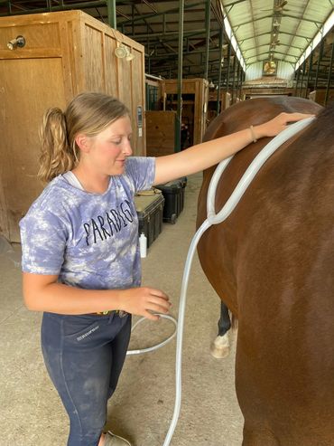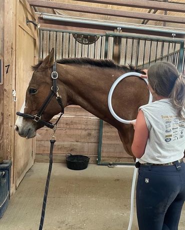 Equine massage may seem self-explanatory but it can have many benefits for your horse. Massage helps release tense muscles whcih allows several processes to take place. Massage can be used as a pre or post- event therapy or for maintenance and recovery. Muscles contract and release to allow the horse movement. Horses in heavy work or recovering from injury may have tight muscles from increased use of injury compensation.