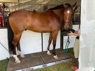 The Thera Plate is a vibration technology used for rehabilitation and recovery. The Thera Plate creates circular vibrations that stimulate muscle contraction, increase circulation and reduce inflammation, aiding in the healing and recovery process. The Thera Plate has been proven to benefit horses in many ways including; Bone and joint health, performance, cardiovascular, and neurological health as well as general overall wellness.